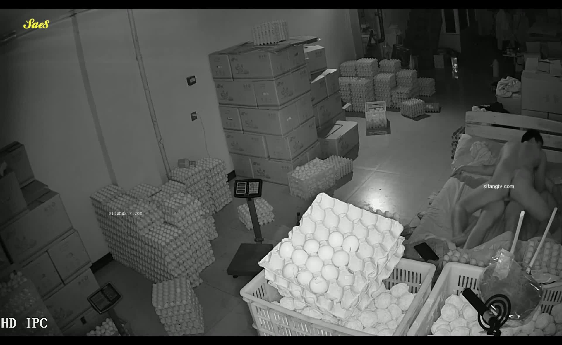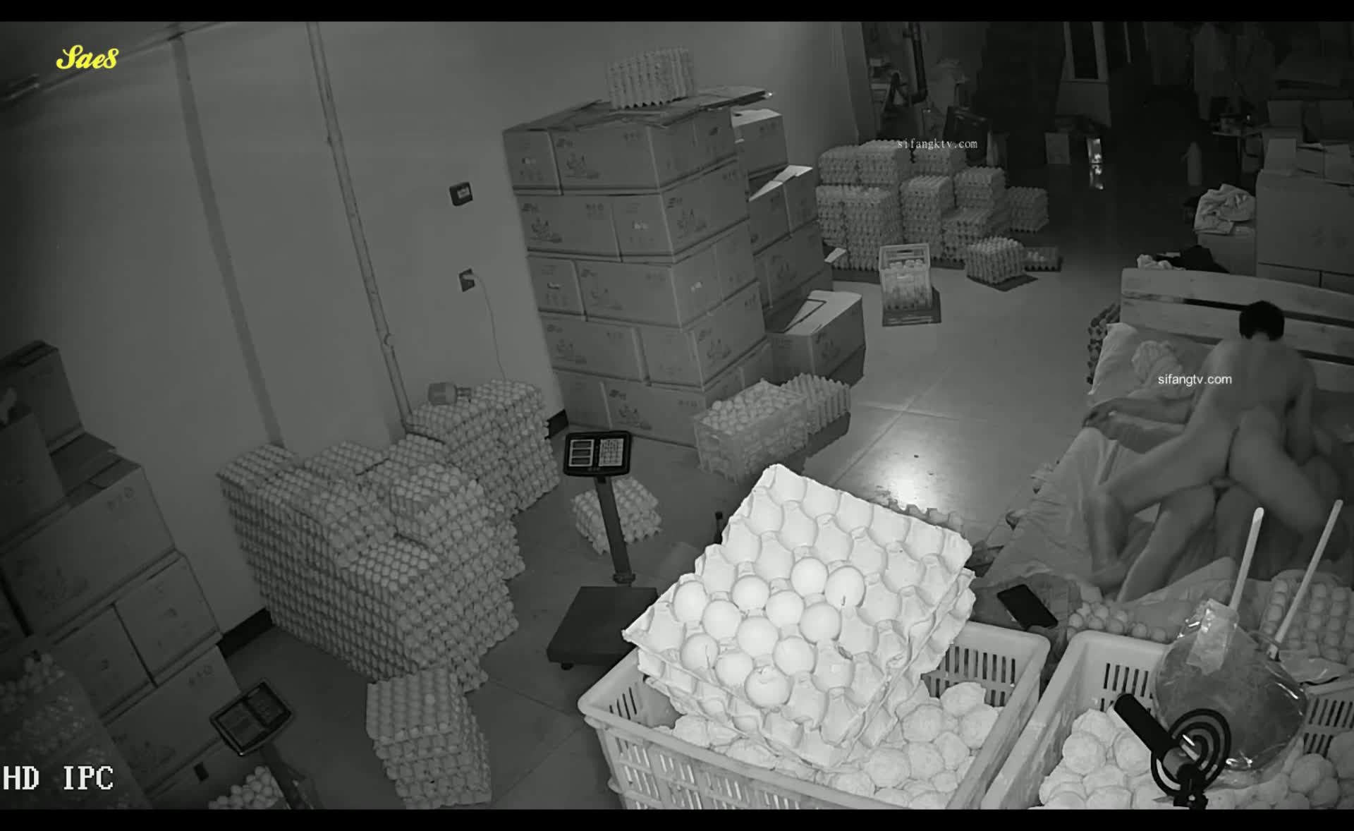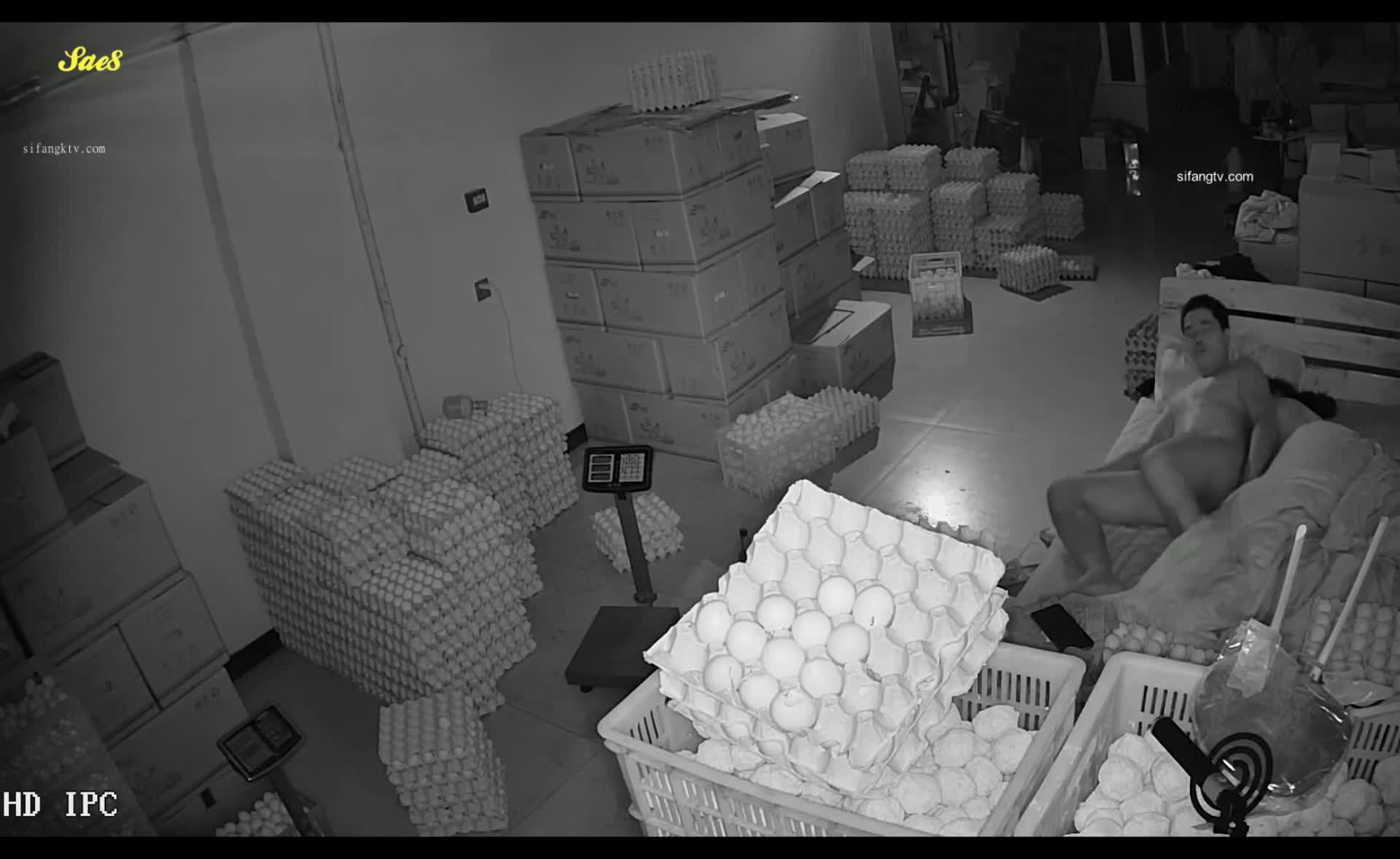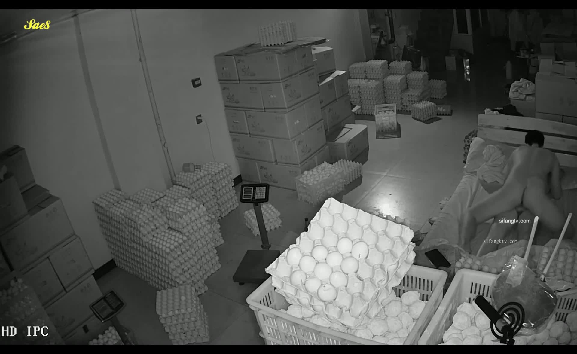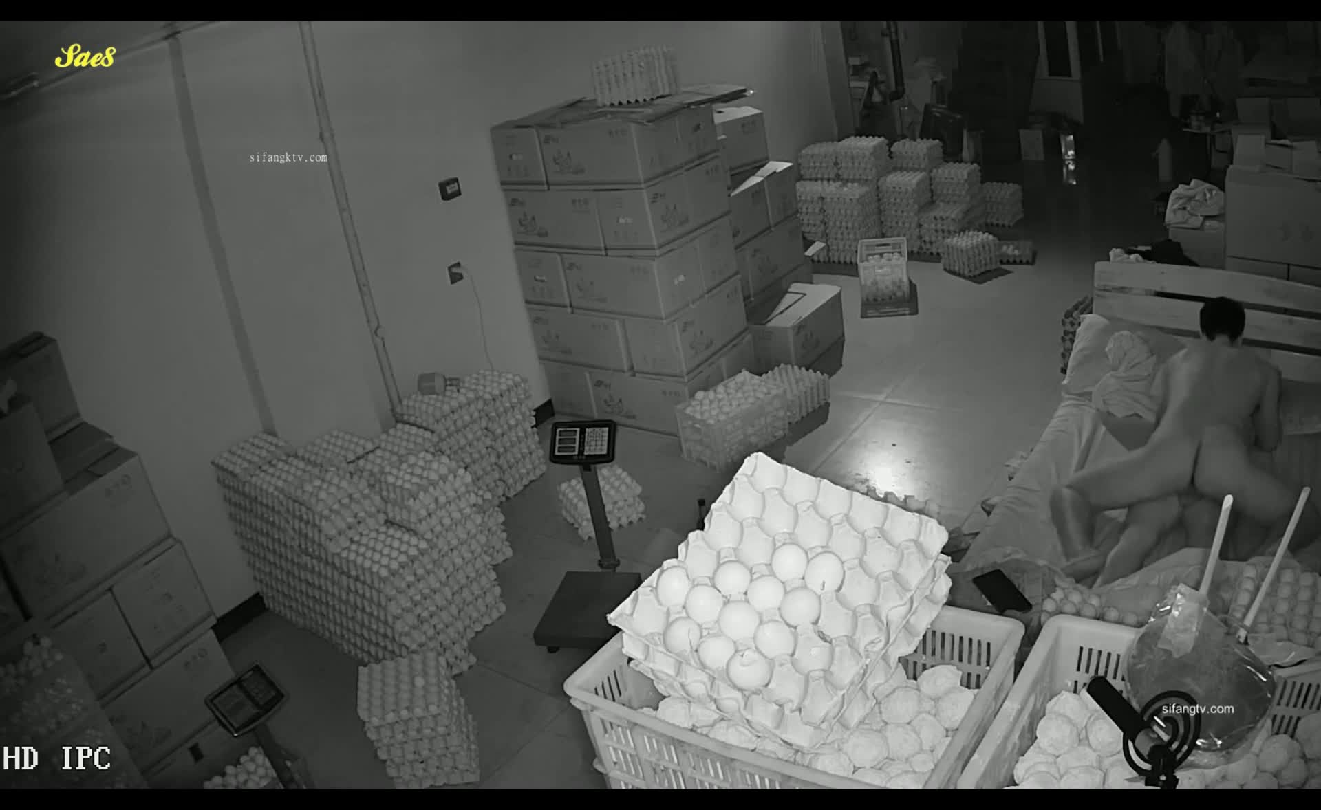 老板察觉被绿偷偷安装摄像头拍下老板娘半夜和强壮仓管员幽会偷情