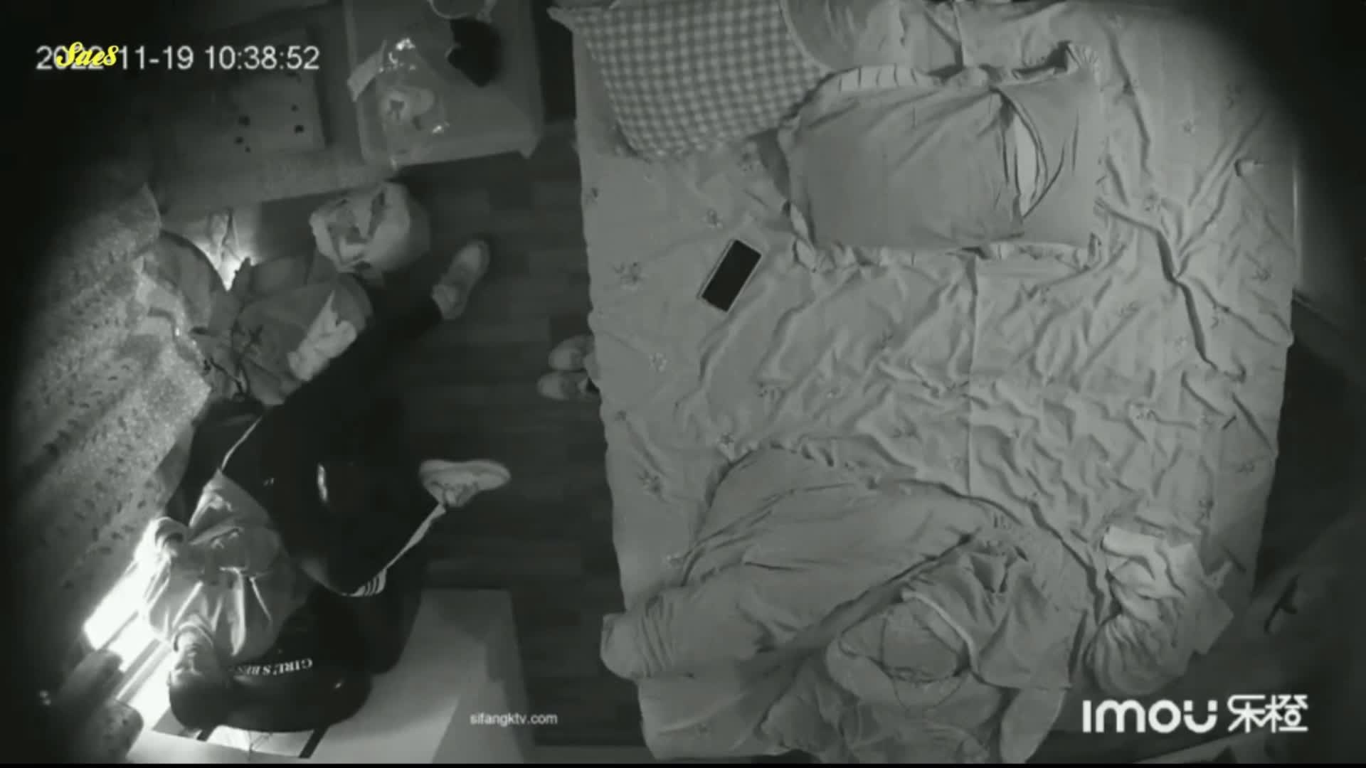 监控拍下胖哥背着媳妇和同事开房上帝视角。
