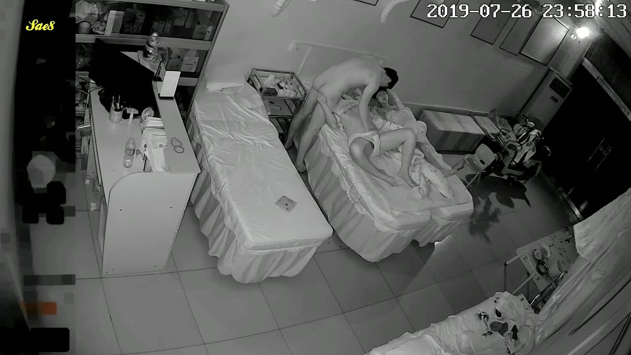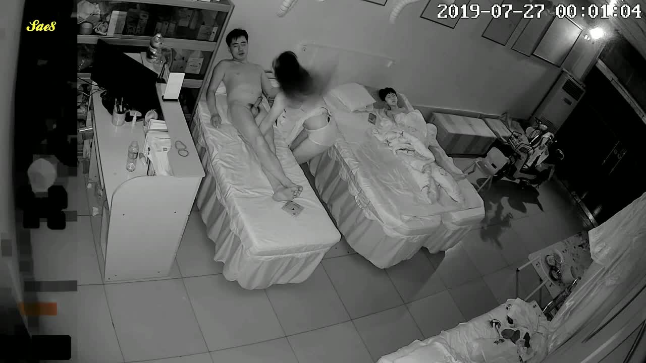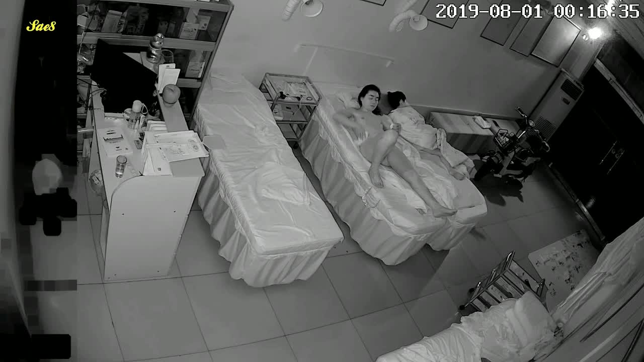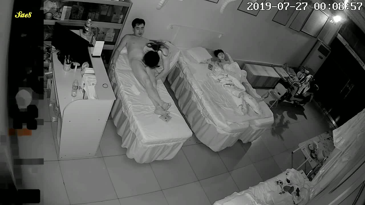 家庭摄像头偷拍美容院饥渴中年夫妻深夜趁着小孩睡着摸黑做爱。